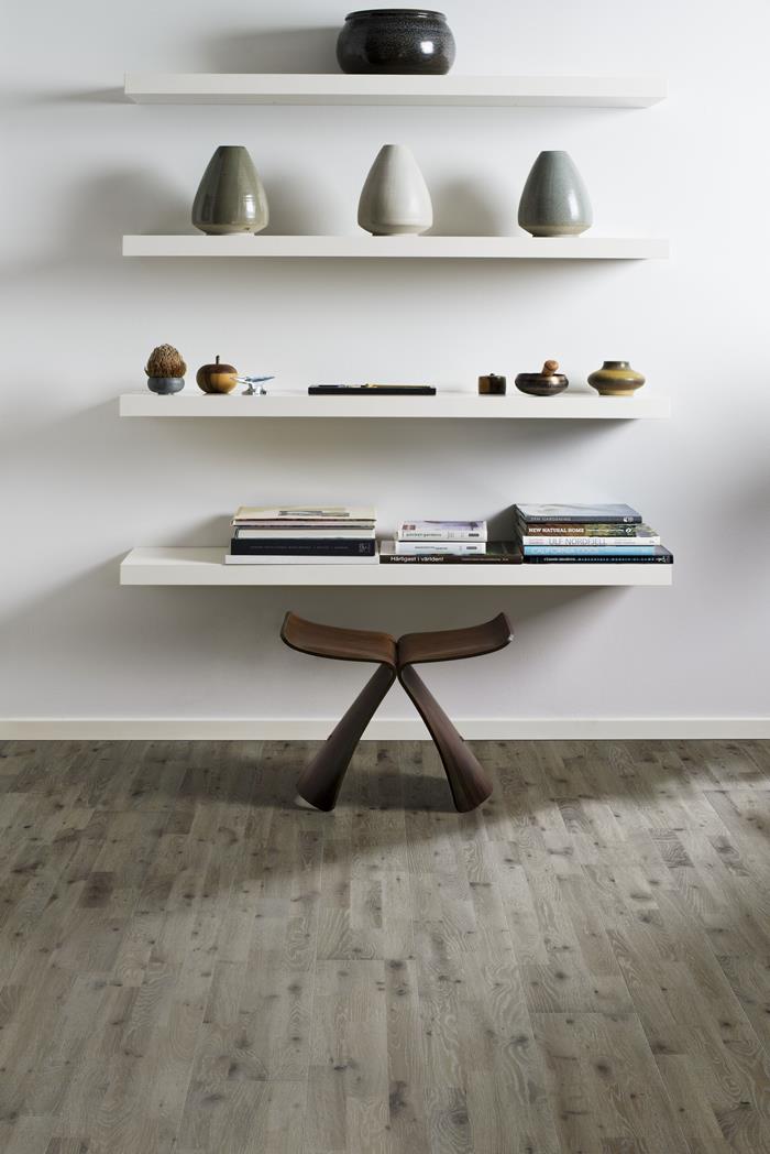 Götaland: una colección vintage de 3 lamas con una superficie fluida raspada y cepillada. Las marcas de sierra dispersas al azar en combinación con los biseles que enmarcan cada tabla crean un efecto que comienza a difuminar la línea entre 3 lamas y el plano completo.